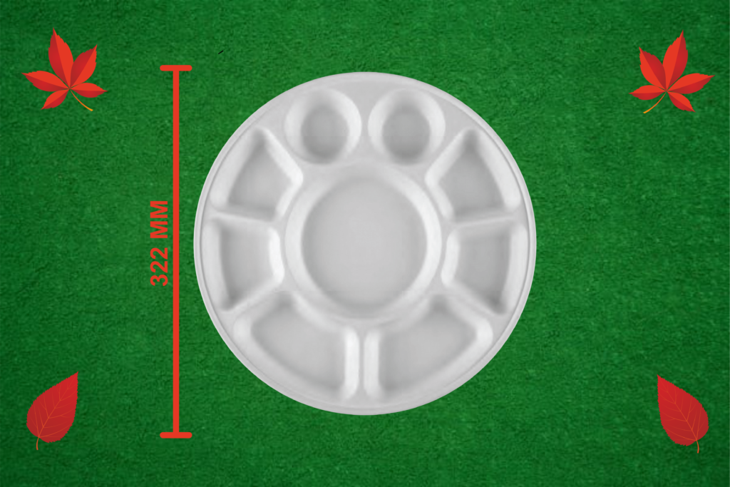 Featuring 9 compartments, this biodegradable plate is perfect for serving diverse meals while keeping flavors separate. Crafted from sugarcane bagasse, it offers a sustainable solution designed to handle both small and large portions. Ideal for catering, buffets, and large gatherings, this plate seamlessly combines convenience with eco-consciousness.