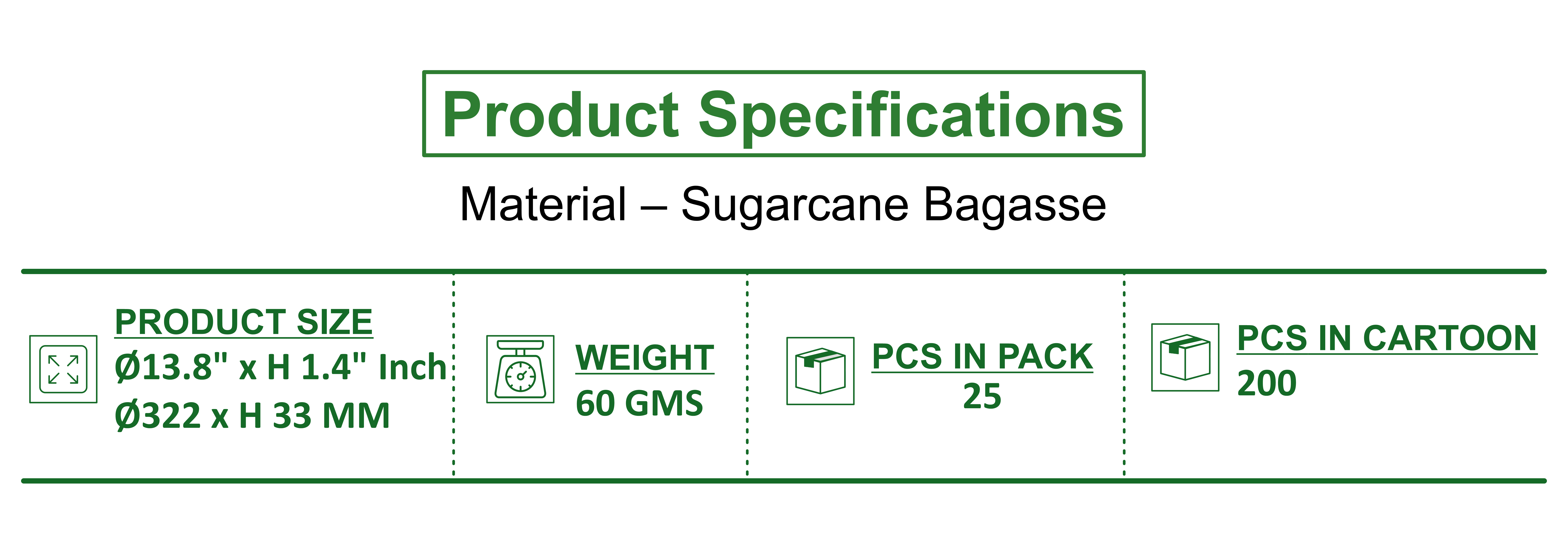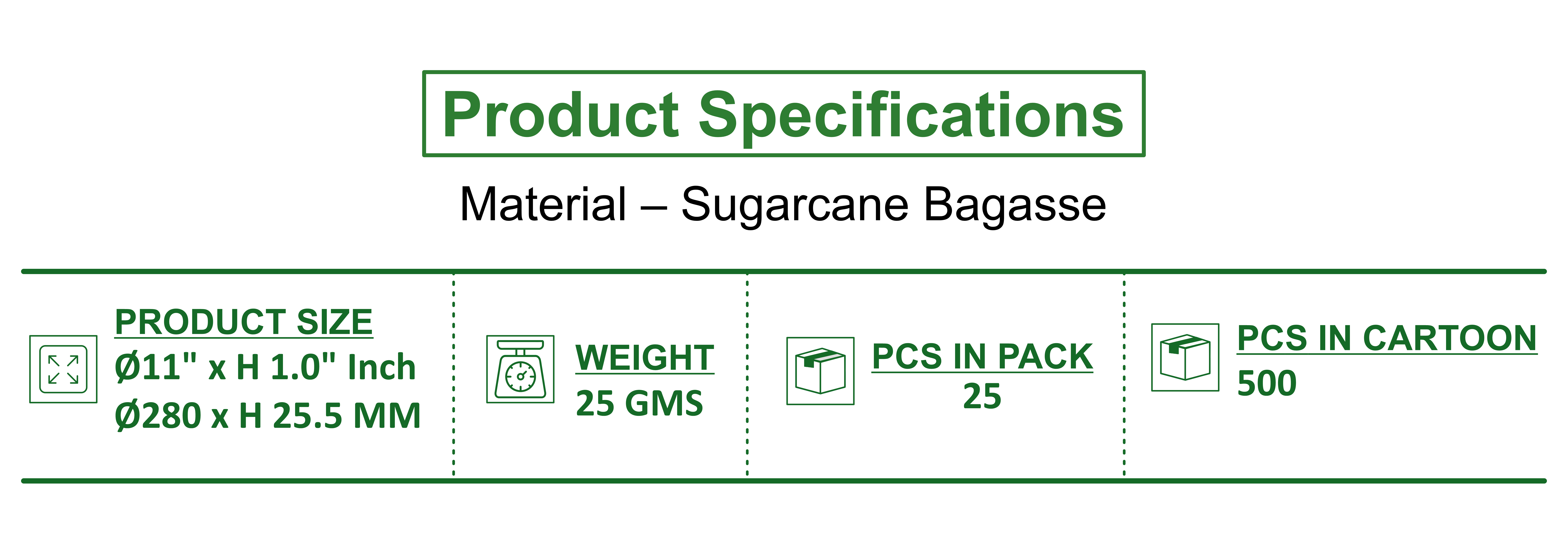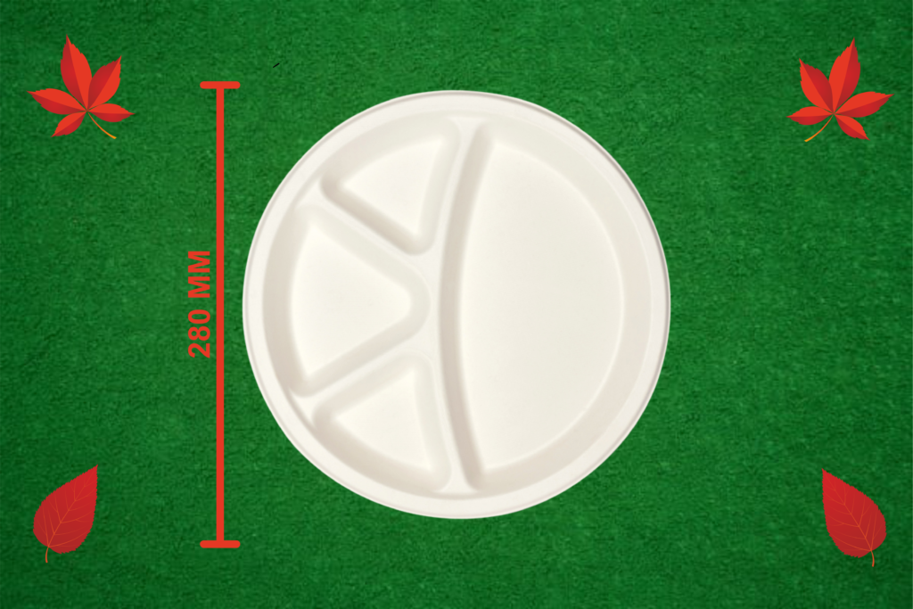 Our 11-4 Compartment Plate, made from natural sugarcane bagasse, provides a practical and sustainable solution for serving meals with multiple components. Its microwave-safe and biodegradable nature makes it an ideal choice for eco-conscious consumers who want to avoid single-use plastics while enjoying convenience.